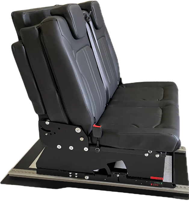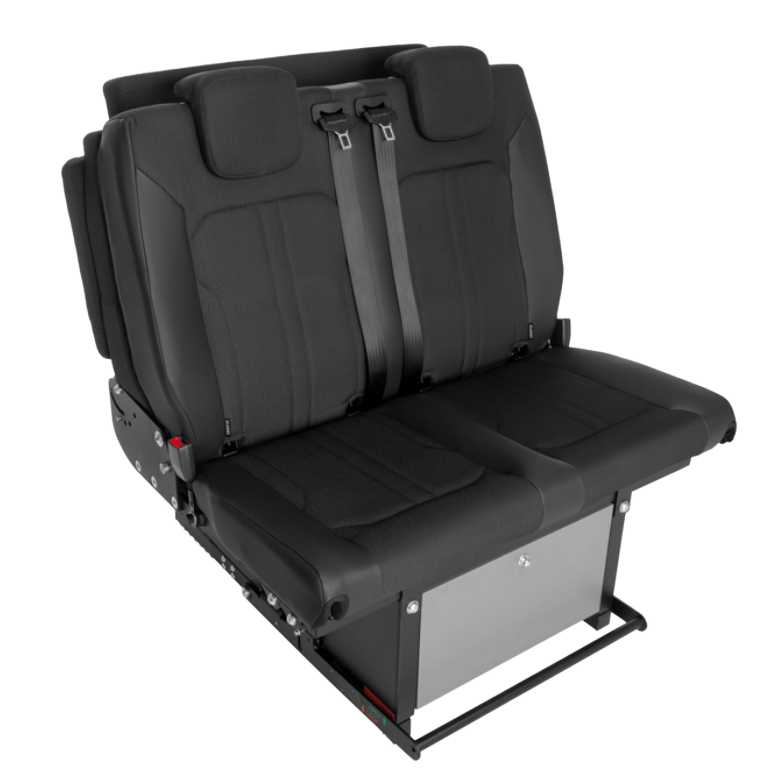 The double-seater Seatbed is perfect for those prioritizing space efficiency without sacrificing functionality. While slightly more compact than the 3-seater version, it still comfortably sleeps two adults. This 2-seat configuration easily transforms from a secure travel seat into a 74" bed with multiple reclining positions, delivering both comfort and versatility.