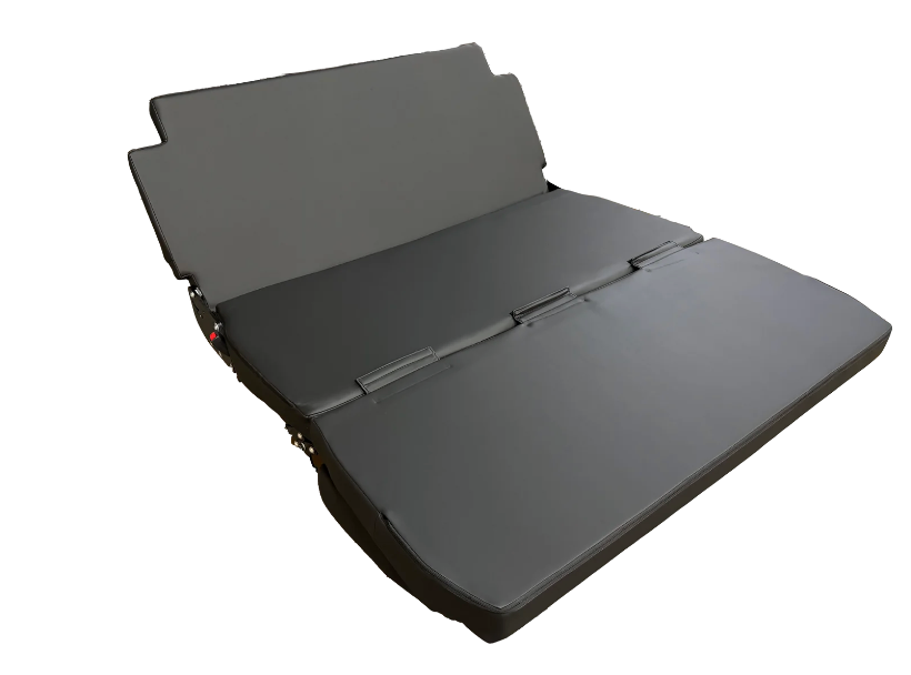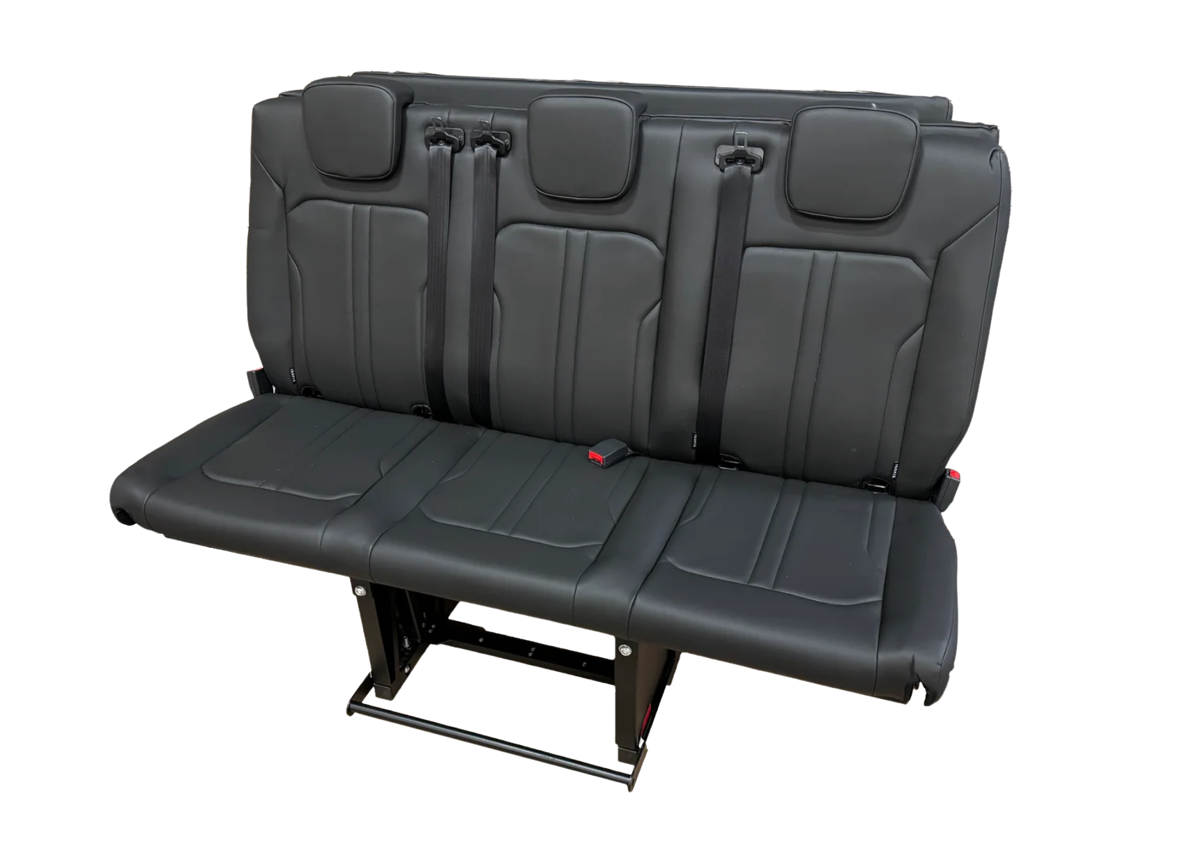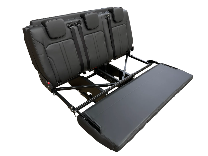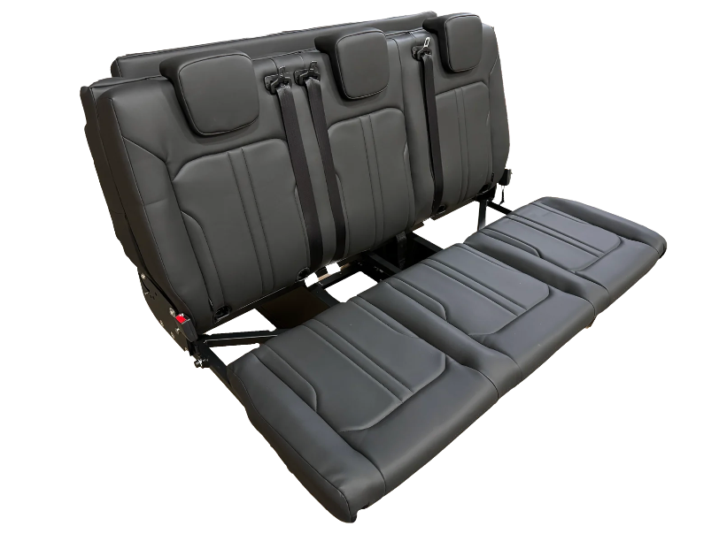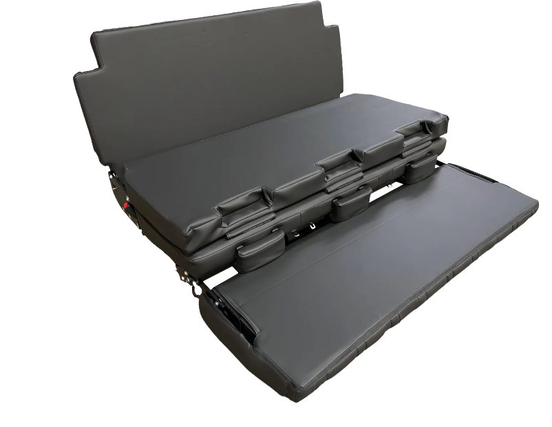 This versatile 3-seat seatbed features adjustable width options and is built for maximum comfort and safety. It quickly transforms into a bed with multiple reclining positions. Features a spacious 74” sleeping setup when folded completely.