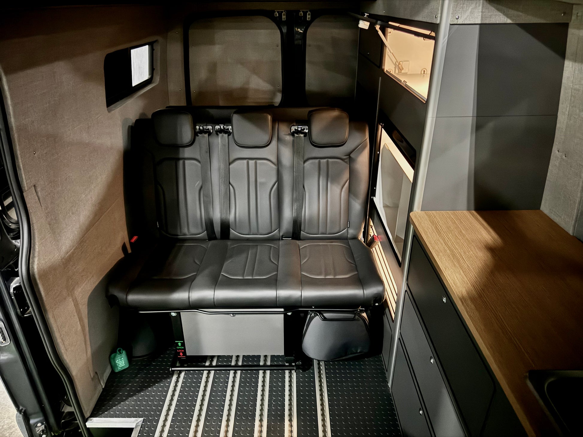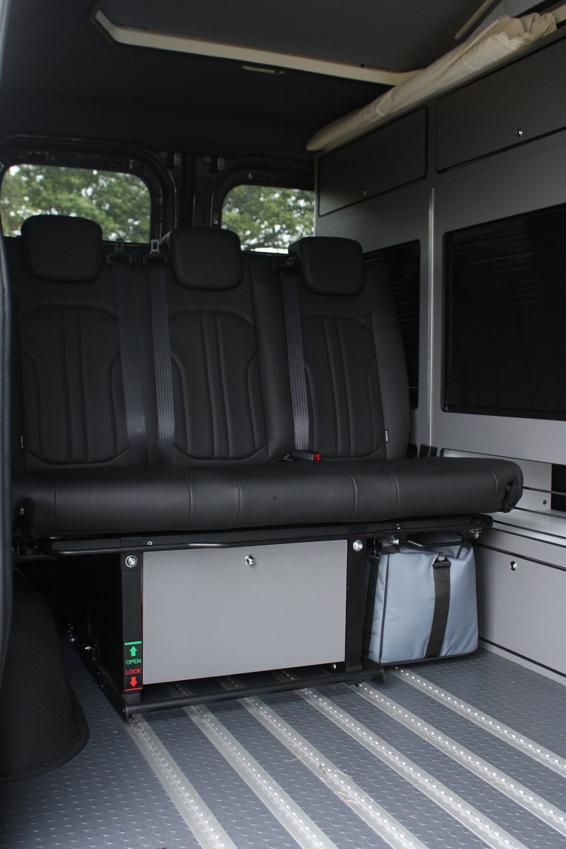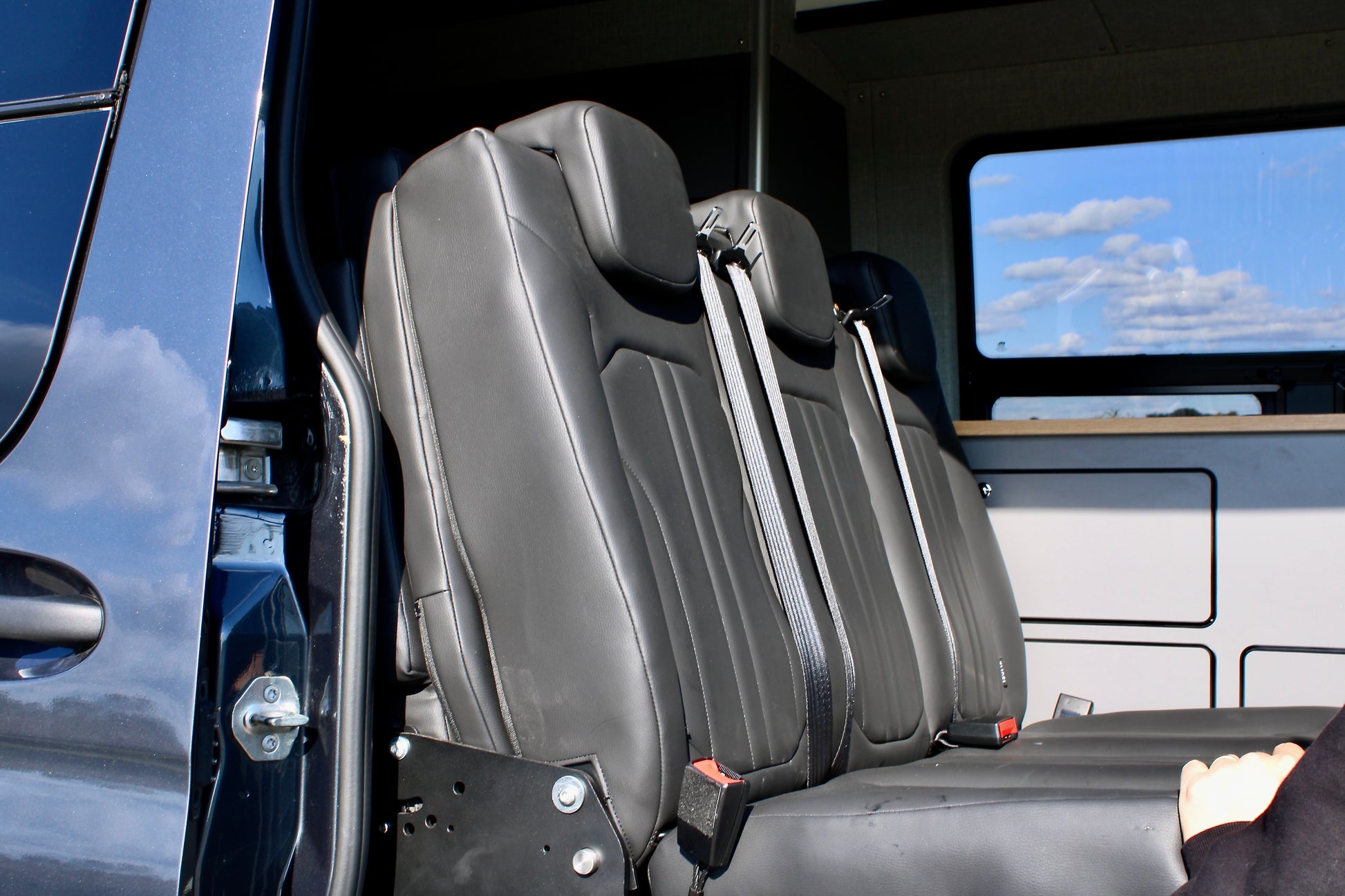 This versatile 3-seat seatbed features adjustable width options and is built for maximum comfort and safety. It quickly transforms into a bed with multiple reclining positions. Features a spacious 74” sleeping setup when folded completely.